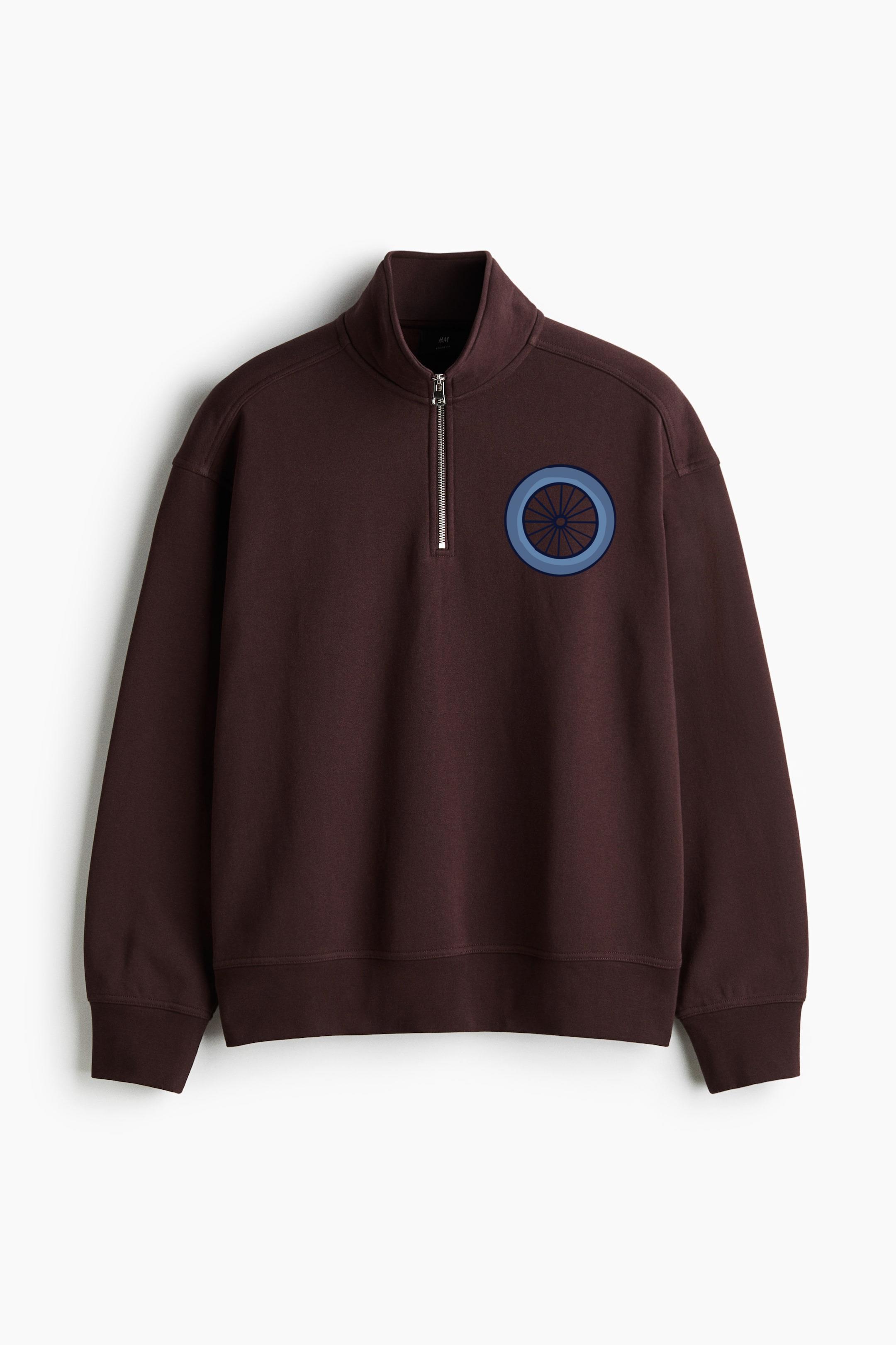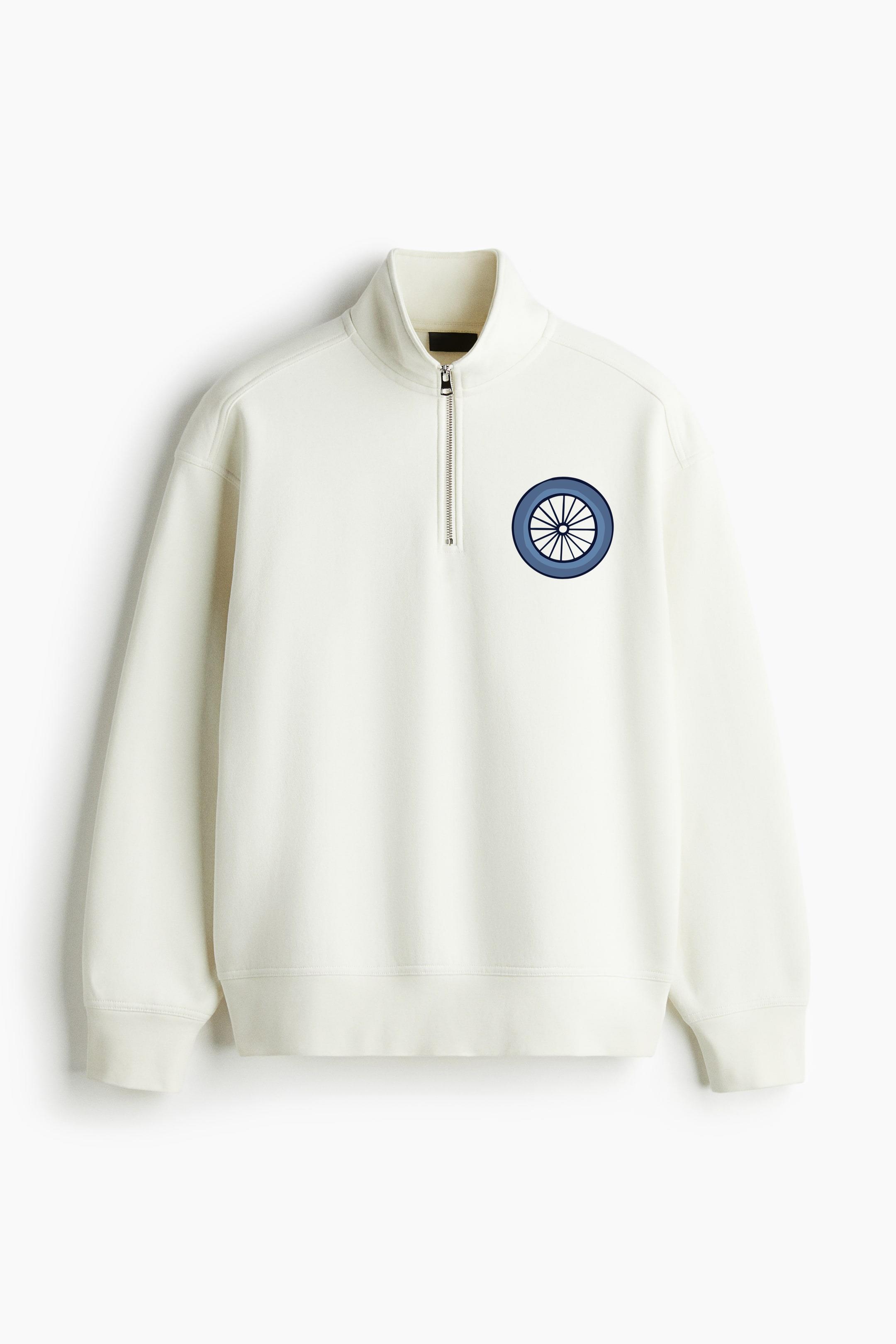 Bicycle Wheel Flat Loose-Fit Sweatshirt Collar Jacket Loose-Fit Sweatshirt Collar Jacket – Casual Zip-Up Fleece Jacket with Ribbed Collar and Relaxed Silhouette