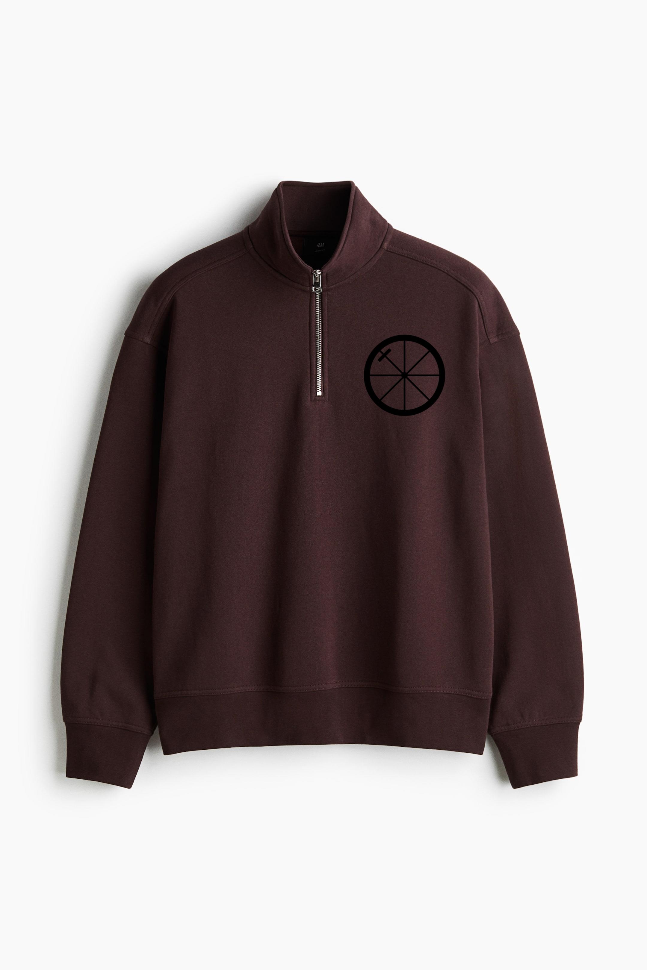 Bicycle Wheel Silhouette Loose-Fit Sweatshirt Collar Jacket Loose-Fit Sweatshirt Collar Jacket – Casual Zip-Up Fleece Jacket with Ribbed Collar and Relaxed Silhouette